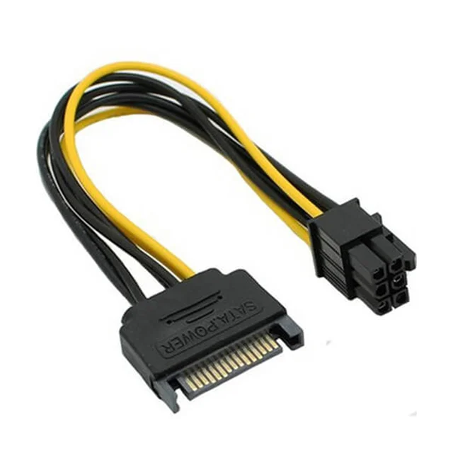 کابل کارت گرافیک 6 پین PCI-E کارت گرافیکی به پورت PCI-E با پین اتصال PCI-E به 15 پین SATA Power Adapter اجازه می دهد سوکت های SATA را به پورت برق 6 پیک در یک کارت گرافیک PCI-E متصل کند. اتصال کابل برق اضطراری Sata می تواند خطر آسیب رساندن به اتصالات داخلی را که برای دسترسی و جدا شدن از آن مشکل است، کاهش دهد و همچنین فشار روی اتصالات درایوهای SATA یا مادربرد کامپیوتر را کاهش دهد.
