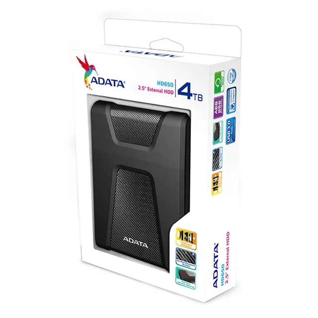 نگاهی به ویژگیهای هارد دیسک Adata HD650ساخته شده برای مقاومت در برابر سختترین ضربههابرای اینکه هارد دیسک Adata HD650 در مقابل ضربه مقاوم شود کمپانی ای دیتا بدنه آن را از مواد سیلیکونی مخصوص و 3 لایه ساخته است. این هارد دیسک به صورتی طراحی شده است که بتواند در 4 جهت ضربه را دفع کند، بنابراین به راحتی میتواند در برابر بیشتر ضربهها از خود مقاومت نشان دهد.بدنه با سطح محافظت شده برای مقاومت در برابر خط و خشبدنه هارد دیسک HD650 از پلاستیک ترکیبی بسیار با دوام طراحی و ساخته شده است تا این هارد دیسک در مقابل خط و خش و ساییدگی مقاوم شود.