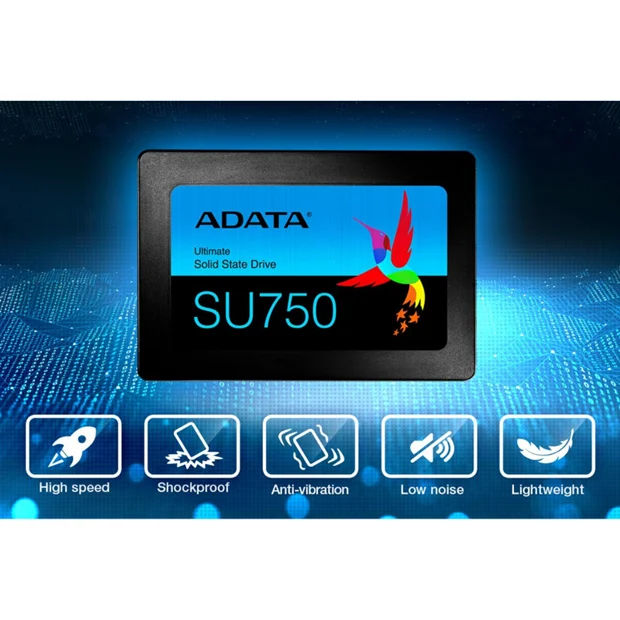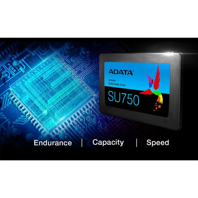 اساسدی «SU750» محصولی از برند «ای دیتا» (ADATA) است. فرم فاکتور این حافظه 2.5 اینچی است که بهراحتی میتوان آن را جایگزین هارد دیسک لپتاپ کرد. حافظههای SSD برخلاف هارددیسکها برای انجام پردازشهای مربوط به ذخیرهسازی اطلاعات از هیچ قسمت حرکتی استفاده نمیکنند.