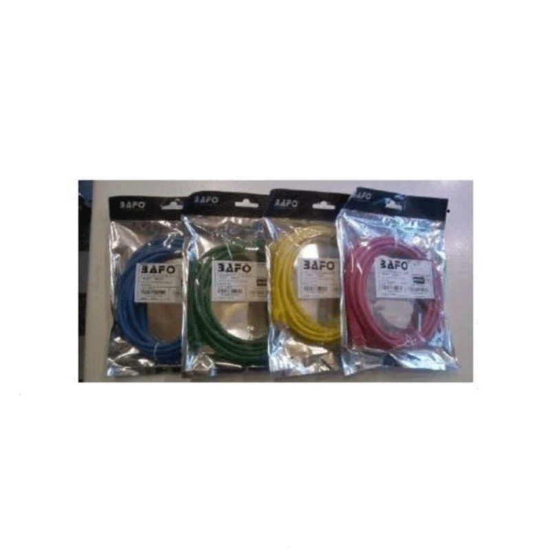 | پچ کورد بافو یک کابل شبکه با کانکتور RJ45 Male بوده که هر دو از گروه CAT6 می باشد.  کابل و کانکتور این پچ کورد از نوع UTP بوده و دارای چهار زوج سیم مسی به هم تابیده بدون شیلد است. | به دلیل بهره بردن این پچ کورد از کانکتور و کابل CAT6 این محصول توانایی انتقال داده تا 1000 مگابیت بر ثانیه داشته و از فرکانس 250 مگاهرتز پشتیبانی می کند. | این نوع از کابل شبکه BAFO که در تجهیزات شبکه قابل استفاده است دارای 60 سانتی متر طول بوده و با روکش PVC در چهار رنگ قرمز، آبی، سبز و زرد تولید می شود. |