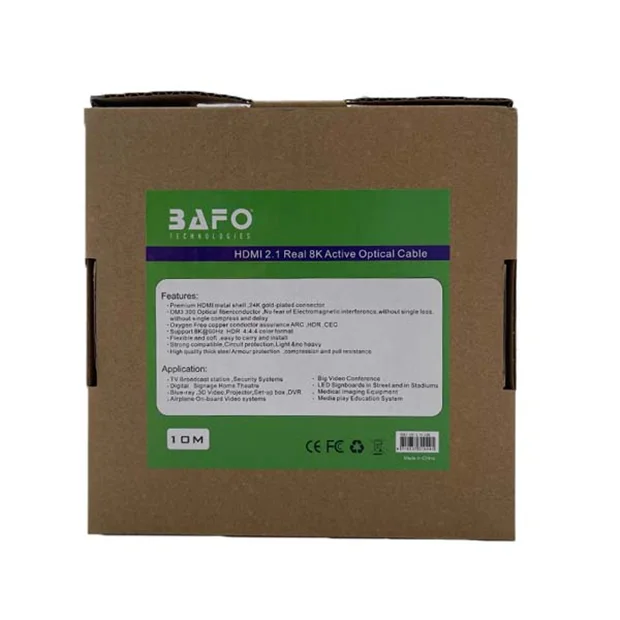 کابل HDMI اپتیکال 8K ورژن 2.1 بافو یک کابل با کیفیت بالا است که برای انتقال سیگنال های تصویری و صوتی با کیفیت بالا طراحی شده است. این کابل از رسانای فیبر نوری OM3 300 استفاده می کند که از تداخل الکترومغناطیسی جلوگیری می کند و تأخیر و فشرده سازی را کاهش میدهد.