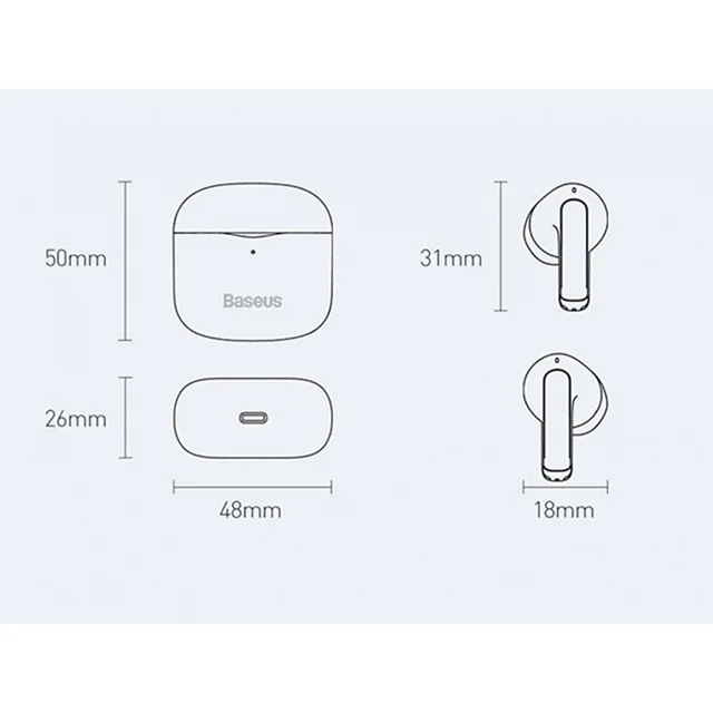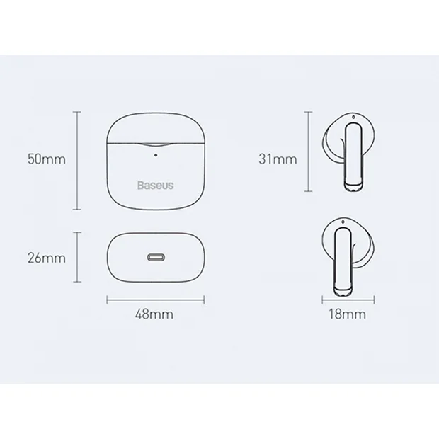 ابعاد ایرفون بیسوس برابر با 31×18 میلیمتر و ابعاد و کیس شارژ آن نیز معادل 50×26×48 میلیمتر است. به تمامی این موارد، وزن کم 35 گرمی آن را نیز اضافه کنید که با در نظر گرفتن آن میتوانید هندزفری را بدون هیچ مشکل و دغدغهای با خود جابجا کرده و حمل کنید. وزن ایرفون هم حدودا 4 گرم بوده که شنیدن موسیقی در مدت زمان طولانی را برای شما آسان کرده و خستگی ایجاد نمیکند.