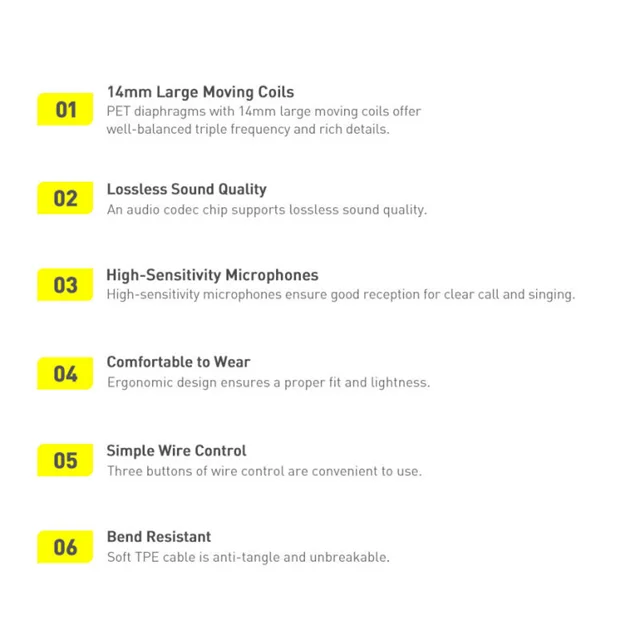 این هندزفری دارای درایور 14 میلی متری دینامیک میباشد که از لایه های فرکانس بالا، فرکانس متوسط و فرکانس پایین تشکیل شده است. صدای منتقل شده توسط این Coil شفاف و واضح است و برای استفاده روزمره جوابگو خواهد بود. دیافراگم های پلیمری این هندزفری دارای فرکانس سه گانه متعادل و تفکیک صدا مطلوبی است. میکروفون همه جانبه این هندزفری با حساسیت بالا، تماس واضح و دریافت صدای دقیق را تضمین می کنند.