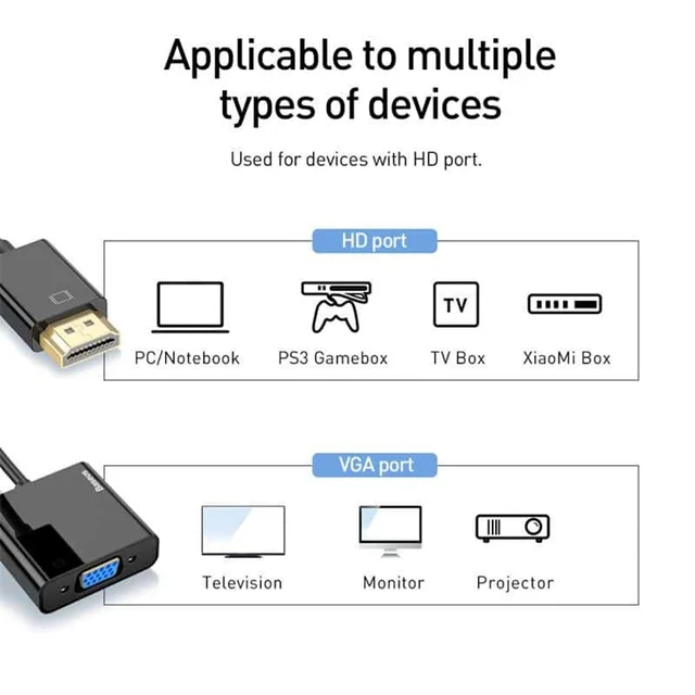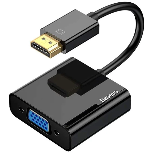 تبدیل باسئوس مدل CAHUB-AH01 یک تبدیل سیگنال دیجیتال HDMI به سیگنال آنالوگ VGA میباشد، با استفاده از آن میتوانید دستگاه هایی که خروجی HDMI دارند مانند انواع لپتاب، رایانه، کنسول بازی را به درگاه VGA صفحه نمایشگر های بزرگ و یا ویدیو پروژکتور متصل کنید، همچنین جک 3.5 میلی متری قرار گرفته بر روی تبدیل برای خروجی صدا کاربرد دارد که میتوانید با اتصال یک کابل AUX صدای خروجی دستگاه خود را به ورودی هر پخش کننده خارجی ای و حتی هدفون انتقال دهید، به منظور تامین جریان مورد نیاز کارکرد دستگاه نیز یک درگاه MicroUSB 5v بر روی آن تعبیه شده که میتواند با استفاده از یک کابل از هر پورت USB 5v و بدون نیاز به آداپتور برق انرژی مورد نیاز خود را تامین کند.
