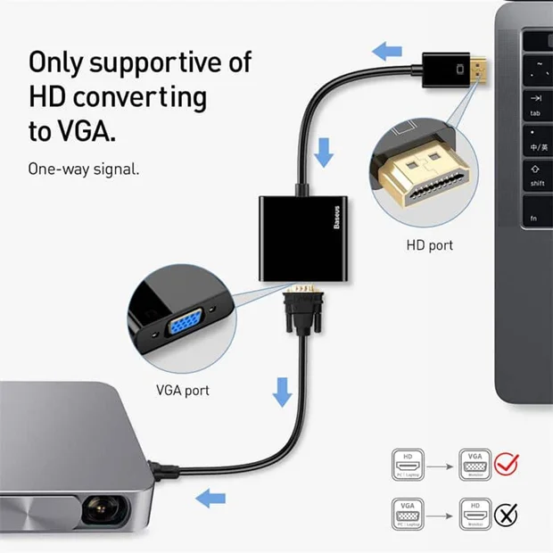 با تبدیل HDMI به VGA باسئوس مدل CAHUB-AH01 میتوانید بدون نگرانی از سازگاری، تمامی دستگاههای HDMI خود را به مانیتور یا پروژکتور قدیمی متصل کرده و از کیفیت تصویر قابل قبول بهرهمند شوید.