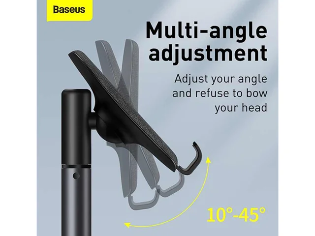هولدر تبلت بیسوس در دسته بندی پایه نگهدارنده های تلسکوپی جای میگیرد. این هولدر ها اغلب دارای پایه میله ای بلندیاند که برای تماشای فیلم به صورت نشسته، شرکت در کنفرانس های کاری و حتی فیلم برداری برای شبکه های مجازی مناسب هستند. ارتفاع پایه نگهدارنده تبلت Baseus Indoorsy Youth Tablet Desk Stand در کمترین حالت ممکن 27 سانتی متر است و در بیشتر حالت ممکن به 35 سانتی متر خواهد رسید. همچنین شما می توانید زاویه آن را بسته به موقعیت و راحتی چشم هایتان تعیین نمایید که این زاویه می تواند از 10 تا 45 درجه متغیر باشد.