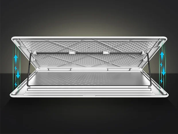 سطح پایه با طرح مش ساخته شده و با بالا نگه داشتن لپ تاپ، سطح تماس هوا با کف آن را افزایش می دهد و با جریان همرفتی ایجاد شده زیر لپ تاپ به خنک سازی کمک میکند.