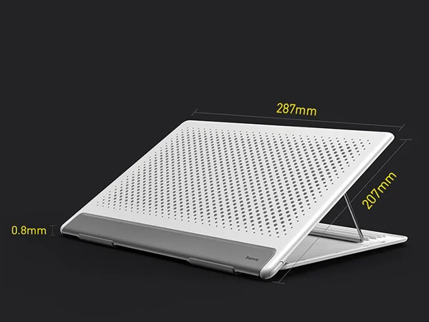 پایه نگهدارنده باسئوس مدل SUDD-2G دارای ابعاد ۲۸۷*۲۰۷*۰٫۸ میلی متر بوده و مناسب برای لپتاپ هایی با سایز کمتر از ۱۶ اینچ می باشد.