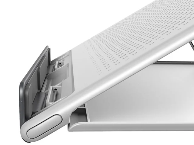 زاویه دار بودن پایه و صفحه ای که لپتاپ روی آن قرار میگیرد ممکن است باعث لغزش لپتاپ شود اما بیسوس برای پیشگیری از این اتفاق در این پایه نگهدارنده لپ تاپ بیسوس مدل Mesh Portable Laptop Stand، بخشی از استند را از جنس سیلیکون ضد لغزش و نرم ساخته است که وظیفه این بخش، مانع از لغزش لپتاپ بر روی استن می باشد.