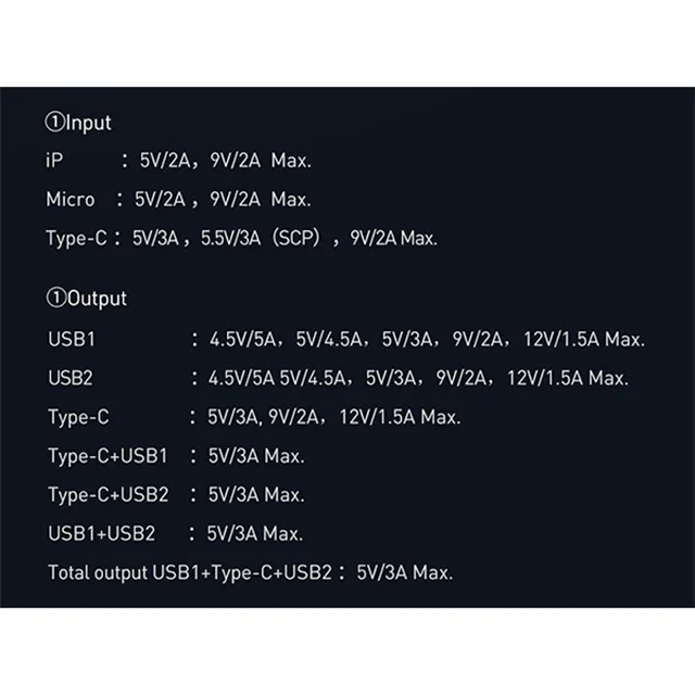 این محصول دارای سه پورت خروجی است که دوتای آن USB بوده که به شما این امکان را می دهد تا بتوانید دو گوشی را با شدت جریان و ولتاژ 5V-3A شارژ کنید. همچنین این پاوربانک دارای یک پورت تایپ سی است که هم بعنوان یک ورودی و هم خروجی استفاده می شود.