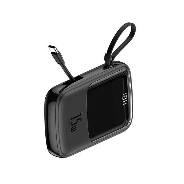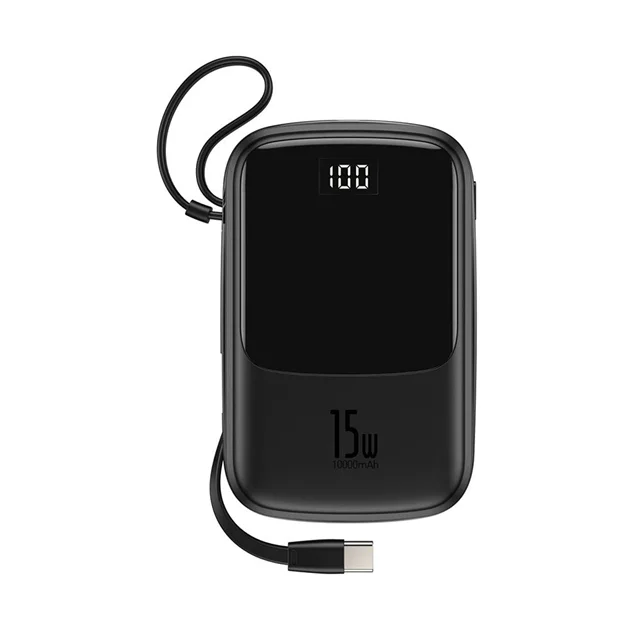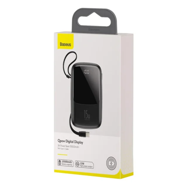 پاوربانک باسئوس مدل PPQD A01 یک شارژر همراه جمع و جور و کم حجم می باشد که از وزنی معادل 203 گرم و ابعادی برابر با 105×67×25 میلیمتر بهره می برد و به شما امکان می دهد آن را به راحتی در کیف خود گذاشته و با خود حمل کنید و هر زمان که نیاز داشتید از آن استفاده کنید. این شارژر همراه مجهز به یک باتری لیتیوم یونی با ظرفیت 10000 میلی آمپر ساعت است که قادر است دستگاه هوشمند شما را تا چندین مرتبه شارژ کند؛ بنابراین با وجود این پاوربانک می توانید نگران تمام شدن باتری گوشی هوشمند خود نباشید و با خیال راحت از آن استفاده کنید. کمپانی باسئوس در ساختار بدنه این پاوربانک کوچک از مواد پلاستیکی مقاوم به همراه مواد ABS استفاده کرده است که باعث می شود در برابر انواع ضربه و خط و خش از مقاومت بالایی برخوردار باشد. پاوربانک باسئوس مدل PPQD A01 مجهز به یک صفحه نمایش LED می باشد که به وسیله آن می توانید در هر زمان قدرت پاوربانک را بررسی کنید. این مدل پاوربانک همچنین روی بدنه خود یک کابل Type C دارد که علاوه بر اینکه می تواند شارژ دستگاه هوشمند شما را تامین کند، به عنوان بند نیز مورد استفاده قرار می گیرد و قابلیت حمل آسان شارژر همراه را در اختیار شما قرار می دهد. این دستگاه دارای 2 درگاه خروجی از نوع USB و یک درگاه Type C است که به شما امکان می دهد به وسیله آن سه دستگاه را به طور همزمان شارژ کنید که پورت Type C به عنوان درگاه ورودی نیز عمل می کند و می تواند شارژ خود پاوربانک را تامین کند.