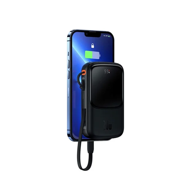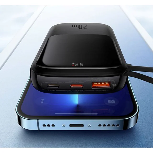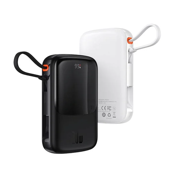 پاوربانک 10000 میلی آمپر باسئوس مدل PPQD020001 انواع امکانات خروجی و ورودی برای شارژ دستگاههای مختلف است. یک کابل لایتنینگ به این پاوربانک وصل شده که از آن برای شارژ گجتهای دارای درگاه لایتنینگ میتوان استفاده کرد. همچنین خود این پاور بانک را میتوان به کمک درگاه Type-c و درگاه لایتنینگ که بر روی آن نصب شده شارژ کرد. علاوه بر این میتوان با کمک درگاه خروجی Type-c و USB قرار گرفته روی این محصول انواع گجتها را شارژ کرد.
