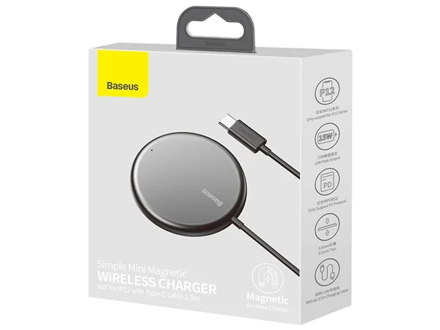 شارژر وایرلس باسئوس Simple Mini Magnetic از توان خروجی نهایت 15 وات پشتیبانی می کند و می تواند با سرعت بالایی گوشی شما را شارژ کند.
