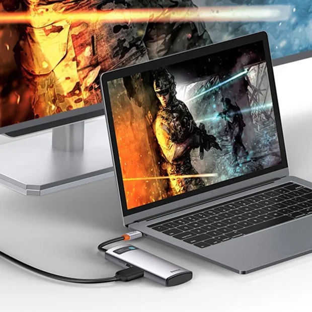 هاب پنج پورت همه کاره Type-c باسئوس مدل WKWG020013 دارای رابط Type-c بوده و سه پورت USB 3.0، یک پورت Type-c و یک پورت HDMI را برای کاربر فراهم میسازد. به کمک این هاب میتوانید از طريق درگاه Type-c به کامپيوتر متصل شده و به پنج پورتی که گفته شده دسترسی پیدا کنید. بدین ترتیب هم میتوانید بسیاری از کارهای خود را به سادگی هر چه تمامتر انجام دهید و هم درگاه Type-c شما اشغال نخواهد شد. جنس بدنه هاب پنج پورت همه کاره Type-c باسئوس مدل WKWG020013 از پلاستیک ABS بوده و از کیفیت زیادی برخوردار است. هاب پنج پورت همه کاره Type-c باسئوس مدل WKWG020013 بیست سانتی متر طول دارد.