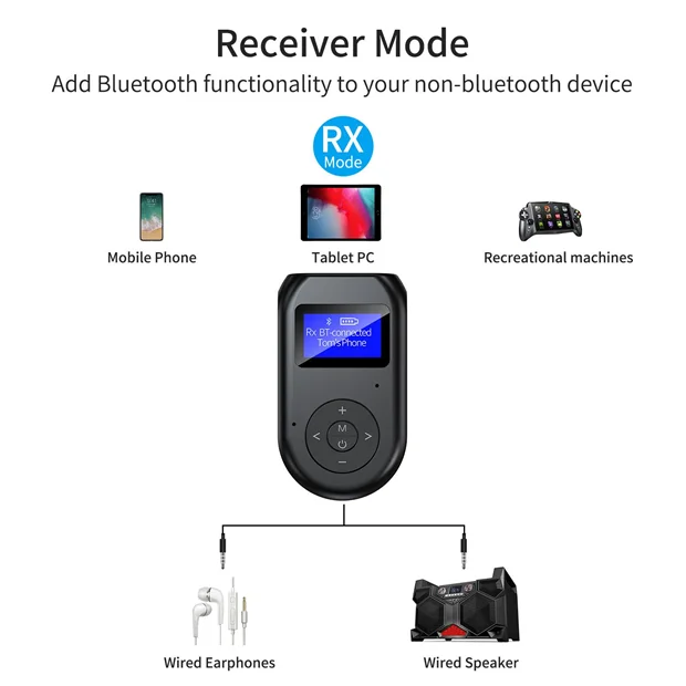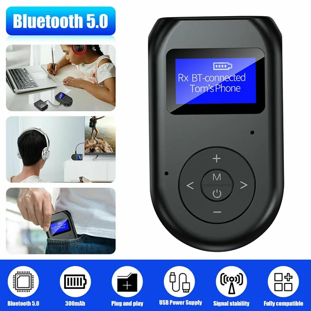 مناسب برای دستگاه های صوتی با رابط صوتی 3.5 میلی متری. سازگار با گوشی های هوشمند و تبلت PC و سایر دستگاه های صوتی دارای BT. دارای یک صفحه نمایش LCD که به وضوح وضعیت اتصال را نشان می دهد.