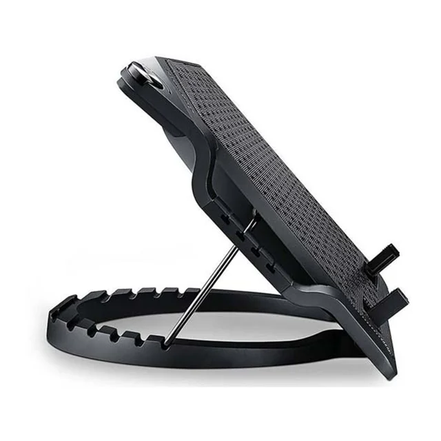 بدنه ی استند Cooler Master ERGOSTAND III طوری طراحی شده است که قادر به بالا آوردن لپ تاپ و زاویه دادن به آن میباشید. 6 دنده در خنک کننده کولر مستر ERGOSTAND III تعبیه شده که میتوان به کمک آن ها کول پد Ergo 3 را در 6 زاویه مختلف قرار داد. سرعت گردش فن در پایه خنک کننده کولر مستر مدل ERGOSTAND III میان 500 تا 800 دور بر دقیقه قابل تنظیم است . همینطور لازم است بدانید برق مورد نیاز فن برای چرخش بوسیله ی یکی از پورتهای USB لپتاپ فراهم میگردد.
