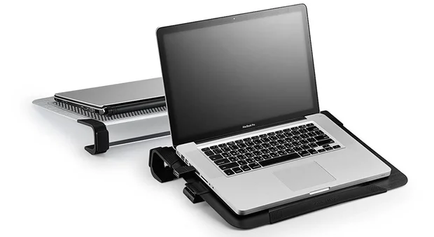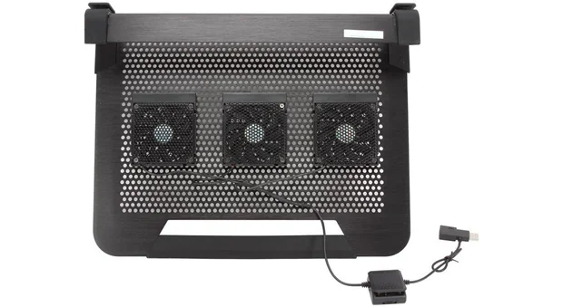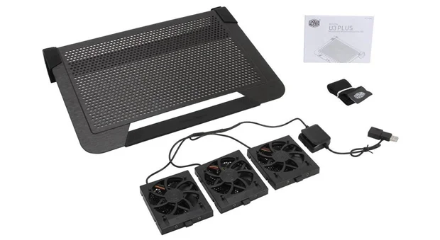 پایهی خنککنندهی «NotePal U3 PLUS» محصول برند «کولرمستر» (Cooler Master) است. بدنهی این خنککننده از ورق فلزی ساخته شده است و سه عدد فن بزرگ 80میلیمتری، خنکسازی لپتاپ را انجام میدهد. فنهای بهکاررفته در NotePal U3 PLUS قابلیت جابهجایی دارند و کاربر میتواند با توجه به نیاز خود، محل فنها را تغییر دهد. بدنهی خنککننده طوری طراحی شده است که به لپتاپ کمی شیب میدهد تا هم گردش هوا زیرNotePal U3 PLUS برقرار شود و هم راحتی استفاده از لپتاپ را بیشتر کند. این ساختار شیبدار، زاویهی دید بهتری را در اختیار کاربر لپتاپ قرار میدهد و از دردهای گردن و کمر ناشی از بد نشستن هم جلوگیری میکند.