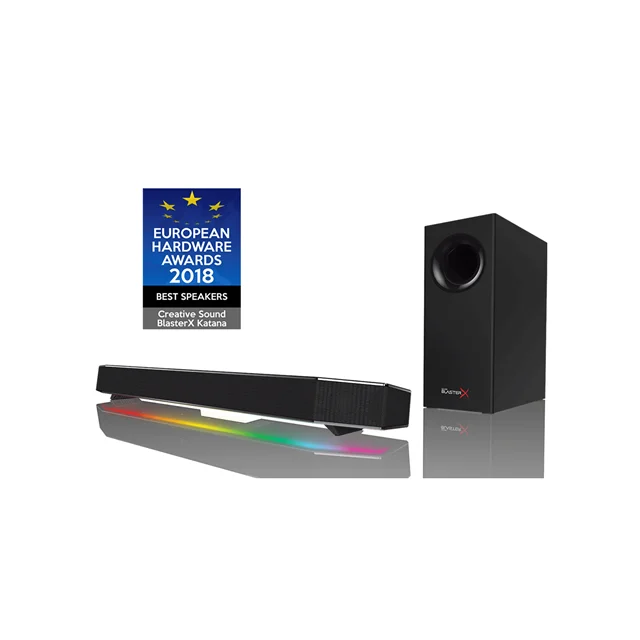 ساندبار گیمینگ KATANA محصولی از کمپانی کریتیو است که در رده گیمینگ معرفی شده و جز خانواده Sound BlasterX از این کمپانی است. اولین ساندبار مخصوص PC که دارای امکانات زیادی است و تمام نیازهای شما را به عنوان گیمر حرفه ای تا مصرف کننده ای کیفیت صدا برایش مهم است را پاسخگو است.