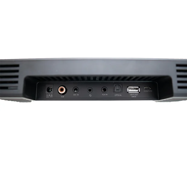 این محصول از تمام ورودی های رایج صدا پشتیبانی می کند. Optical-in, USB Audio, AUX, Bluetooth از هر ورودی که خواستید استفاده کنید چون این ساندبار حرفه ای هیچ محدودیتی را نمی پذیرد.