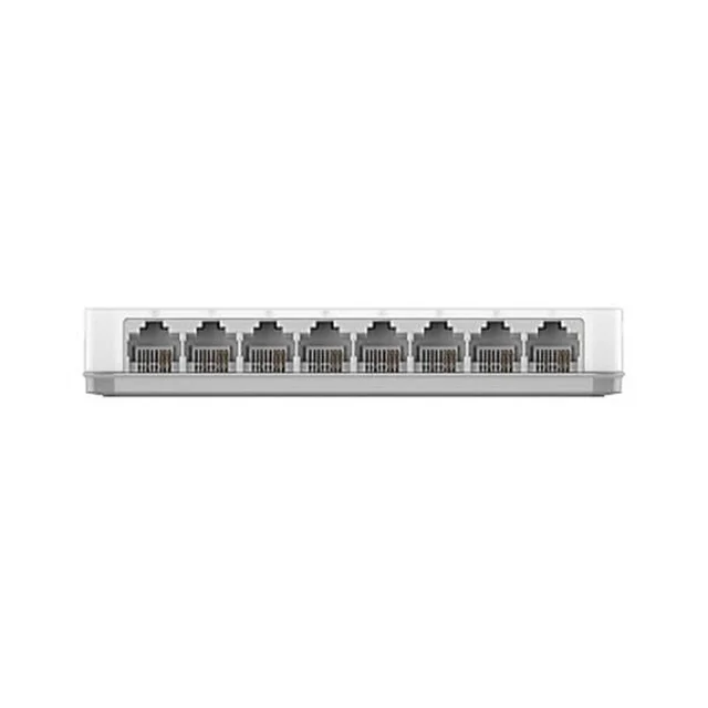 DES-1008C با بدنه پلاستیکی فشرده و بدون فن، در سکوت کامل کار می کند و فضای بسیار کمی اشغال میکند؛ مناسب برای میز کار یا رکهای شبکه کوچک.