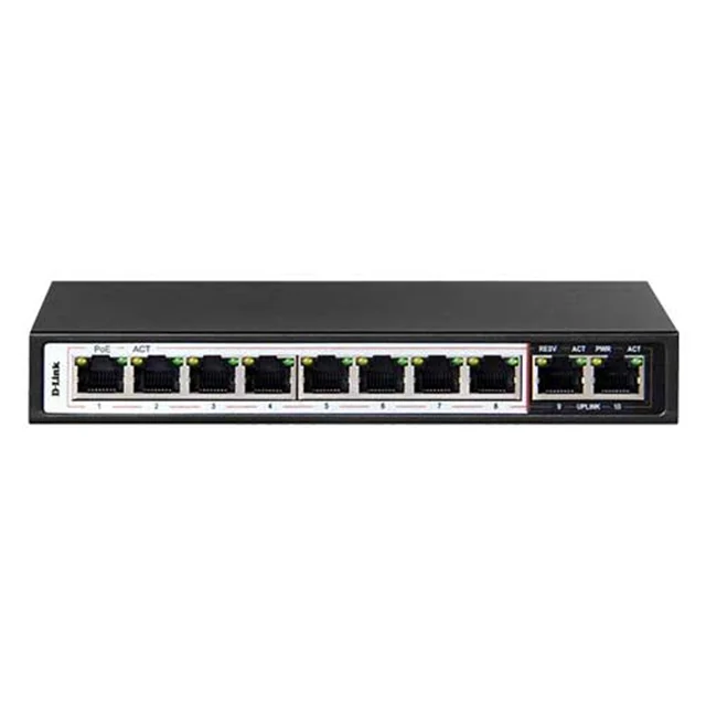 سوییچ DES-F1010P-E دی لینک دارای 8 پورت فست اترنت است. پورت های 1 تا 8 این سوییچ دارای قابلیت PoE هستند و پورت های 9 و 10 پورت های Uplink هستند. استفاده از این سوییچ این امکان را برای کاربران فراهم می کند تا به راحتی دستگاه هایی که از PoE پشتیبانی می کنند مانند اکسس پوینت ها و دوربین های تحت شبکه را به سوییچ وصل کرده و برق مورد نیاز را از این طریق تامین کنند.