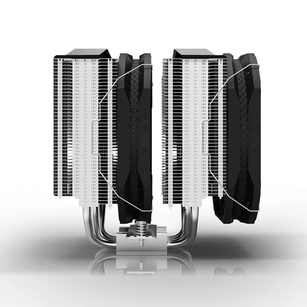 این خنک کننده از تعداد 7 هیت پایپ پیشرفته برخوردار می باشدکه به 2 هیت سینک از نوع tower به صورت یکپارچه متصل شده و سطح گسترده و قابل توجهی را جهت دفع حرارت تولیدی به ارمغان آورده است. این کولر خنک کننده از طراحی لایه بندی حرارتی جدیدی برخوردار می باشد که علاوه بر تغییر در ظاهر محصول، در بهبود پروفایل خنک سازی سیستم نیز توانسته است بسیار مثمر الثمر واقع شود. سطح برقرار کننده تماس با پردازنده از نوع مسی بوده و ساختار هندسی آن کمی محدب در نظر گرفته شده است که در کنار پرداخت صیقلی انجام شده قادر است تا به صورت موثرتری بر روی سی پی یو قرار گرفته و راندمان خنک سازی را با بهبود فراتری همراه سازد. |