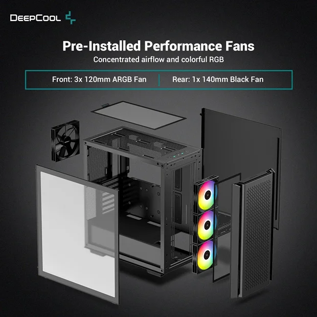 سه فن ARGB120 میلی متری از پیش نصب شده در جلو و یک فن 140 میلی متری در عقب برای بهبود عملکرد خنک کنندگی
