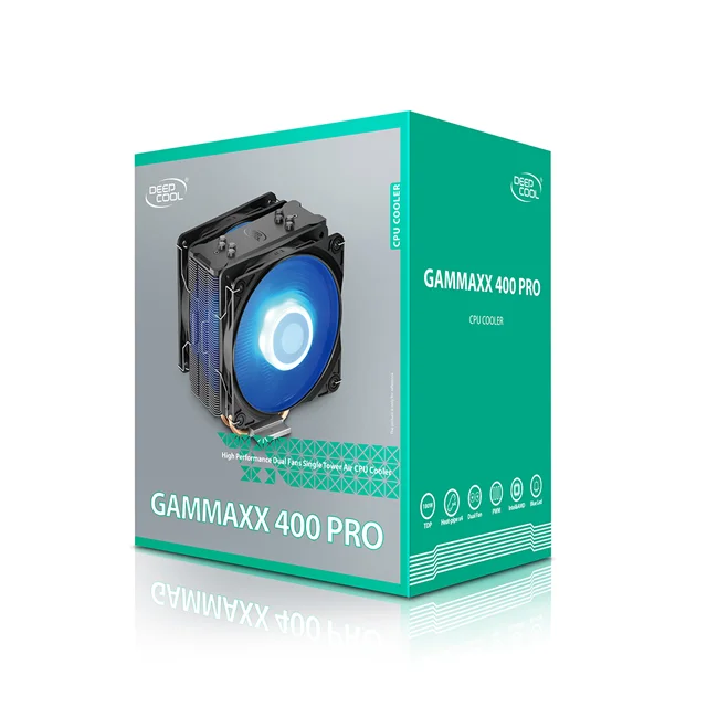 خنککننده پردازنده دیپ کول مدل GAMMAXX 400 PRO از نوع خنککنندههای بادی این شرکت میباشد که درون خود دو فن PWM 120 میلیمتری میبیند که عملکردی عالی در رساندن هوا به پردازنده و دور کردن گرما از آن نشان میدهد، دیپ کول همچنین در این فن BLUE LED قرار داده است تا جلوهای جذابتر به درون کیس ببخشد. |
