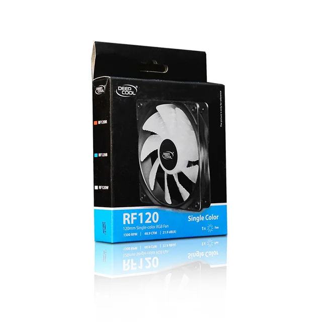 فن کیس RF 120 دیپکول (DeepCool) در استاندارد سایز 120 میلیمتری تولید شدهاست. نوع سیمپیچ این فن Hydro Bearing است و قادر است جریان هوایی معادل 56.5 فوت مکعب بر دقیقه (CFM) را انتقال دهد. برای کمشدن نویز ناشی از گردش فن، از ساختار دو بلبرینگی استفاده شدهاست که عملکرد روانتر و ساکتتری را سبب میشود.