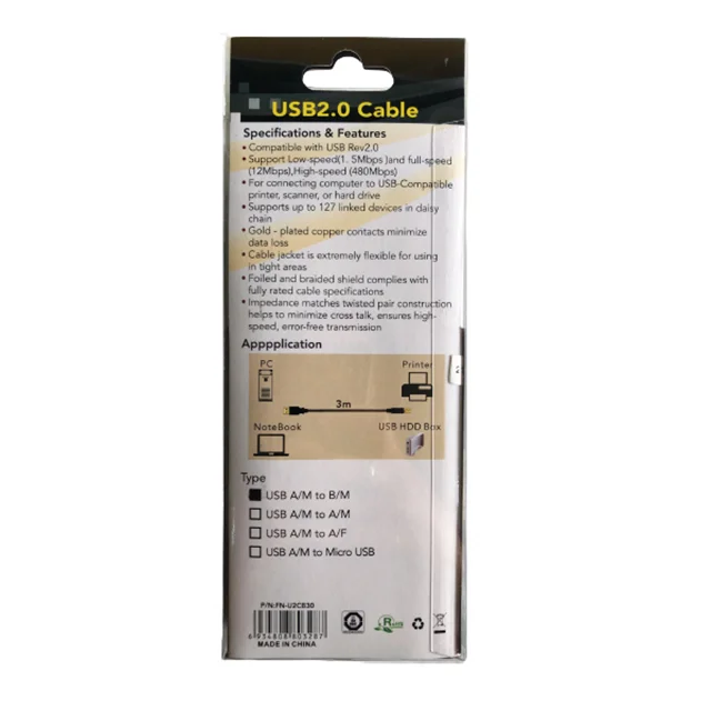 ویژگی ها: 1- طول کابل : 3 متر2- جنس کابل : PVC 3- پوشش کانکتور : PVC 4- جنس سر کانکتور : مس با آبکاری طلا 5- جنس رشته های درون کابل : مس 6- سازگار با : USB2.0 7- قابلیت پشتیبانی از : USB1.0 - USB1.1 8- وزن : 175 گرم 9- استاندارد : ROHS - ISO 14001 10- پوشش محافظ داخلی : مس - شیلددار 11- سرعت انتقال اطلاعات : 480Mbps 12- قابلیت پشتیبانی از سیستم عامل های : Windows 98SE/CE/ME/2000/2003/2008/XP/Vista/7/8/Android , Linux , Mac OS , Unix 13- کاربرد : مناسب جهت اتصال به پرینتر ، اسکنر و کلیه دستگاه های دارای پورت USB B/M به کامپیوتر ، لپ تاپ و کلیه دستگاه های دارای پورت USB A/M 14- پورت ورودی : USB2.0 A/M 15- پورت خروجی : USB2.0 B/M 16- دارای کابل نرم و انعطاف پذیر 17- دارای شیلد حفاظتی دور کابل 18- دارای کانکتورهای طلایی جهت داشتن بهترین اتصال 19- دارای زغال نویز گیر 20- دارای قابلیت انتقال اطلاعات با سرعت بالا و بدون خطا |
