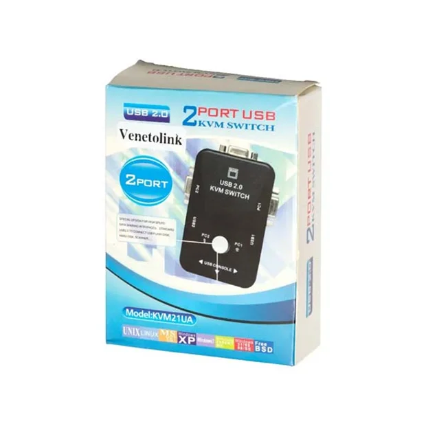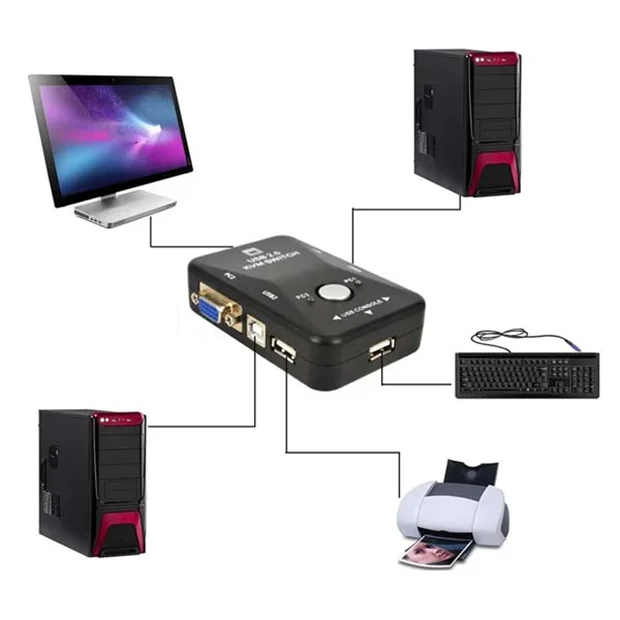 سوییچ دو پورت KVM مدل KVM-21UA همچنین دارای دو عدد درگاه پرینتر نیز میباشد در که در نتیجه این سوئیچ را به گزینه ای مناسب برای استفاده در ادارات تبدیل میکند برخی از این KVMها قابلیت انتقال صدا هم دارند بنابراین سوکت ۳/۵ میلی متری صدا نیز روی آنها تعبیه شده است اما سوییچ دو پورت KVM مدل KVM-21UA به این درگاه مجهز نشده است. همچنین کلیدهایی ، برای جابجایی تصاویر بین دستگاهها نیز روی آن وجود دارد.