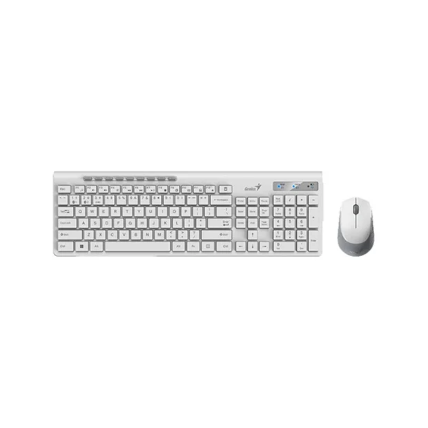 کیبورد این ست دکستاب بسیار زیبا دارای 12 عدد از این کلیدها را کلیدهای Function می باشد که کارایی و دسترسی ها را برای کاربر کیبورد راحت تر می سازد. همچنین کیبورد بی سیم جنیوس مدل SlimStar 8230 از 3 عدد چراع LED به جهت نشان دادن میزان ذخیره شارژ باتری ،روشن یا خاموش بودن دکمه CAPS و خاموش و روشن بودن دکمه NUM برخوردار می باشد.