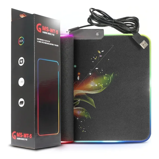 ماوس پد مخصوص بازی مدل GMS-WT-5 RGB طرح پروانه یک وسیله جانبی مناسب برای ایجاد سطحی پد شده و نرم میباشد که علاوه فراهم آوردن ظاهری زیبا برای سیستم شما به لطف طراحی چشم گیر و LED های RGB چند رنگ درخشان، باعث القای حس مطلوب لمس برای طولانی مدت به لطف پارچه ضد حساسیت شاخته شده از الیاف ابریشمی لیکرا میشود، این پارچه با داشتن خاصیت ضد آب بودن خود در برابر پاشیده شدن های ناگهانی نوشیدنی و یا لکه های خوراکی ها مقاوم میباشد، کفی این ماوس پد از پلاستیک با کیفیت ضد لغزش ساخته شده که در نتیجه بر روی هر سطحی با ایجاد اصطکاک مناسب در برابر حرکت کردن های ناشی از استفاده مقاومت میکند که آن را به گزینه ای مناسب برای بازی های E-Sport و که نیاز به تحرک، واکنش بالا و سریع دارند تبدیل میکند، به لطف دور دوزی ماشینی چند لایه و با کیفیت مقاوم در برابر نخ کش شدن و چاپ با کیفیت بالا و مقاوم در برابر سایش در استفاده طولانی مدت شما محصولی با کیفیت را در اختیار خواهید داشت که به مدت طولانی ظاهر و زیبایی خود را حفظ خواهد کرد.