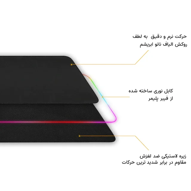 نورپردازی این ماوس پد از 13 حالت پیش فرض نورپردازی پشتیبانی میکند که سازگار با هر سلیقه و حسی اقدام به دو چندان کردن دسکتاپ گیمینگ شما میکند.