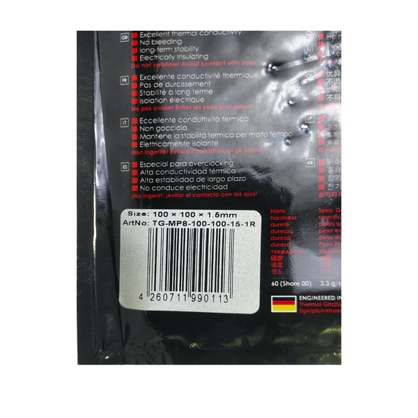 با چگالی 3.3 گرم بر سانتی متر مکعب، این پد تمام ناهمواریهای سطح قطعات را پوشش میدهد و مانع باقی ماندن حباب هوا میشود؛ عاملی مهم برای افزایش راندمان خنک کاری. - ضخامت استاندارد 1.5 میلی متر برای کاربرد های حرفه ای: