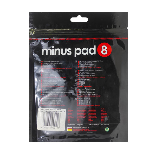 Minus Pad 8 دارای سطحی بسیار الاستیک و تطبیق پذیر است که به راحتی با شکل قطعات مختلف هماهنگ می شود. این ویژگی باعث می شود حتی اختلاف های بسیار جزئی بین سطوح به طور کامل پوشش داده شود و انتقال حرارت به شکل یکنواخت انجام گیرد. - جبران کامل فاصله های میکروسکوپی بین قطعات: