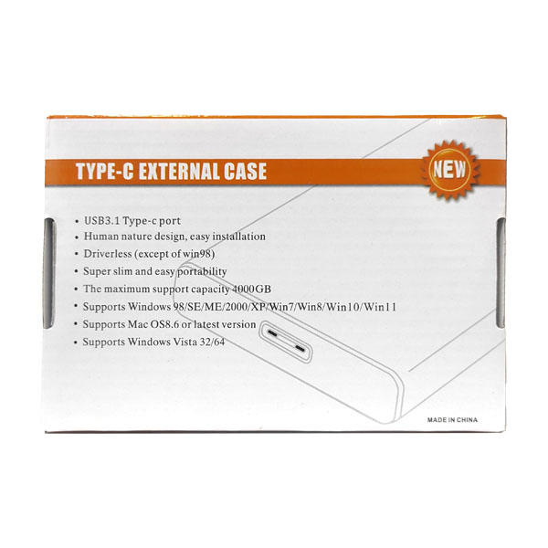 قاب هارد دیسک 2.5 اینچ اکسترنال Type-C شیشه ای دارای سوکت خروجی Type C بر روی خود باکس میباشد و توسط یک کابل که در خود بسته موجود میباشد به پورت USB A دیوایس متصل میگردد. قاب هارد دیسک 2.5 اینچ اکسترنال Type-C مدل شیشه ای را میتوان برای هارد دیسک و یا SSD مورد استفاده قرار داد.