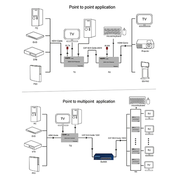 اکستندر HDMI با طول 200 متر KVM دارای IP