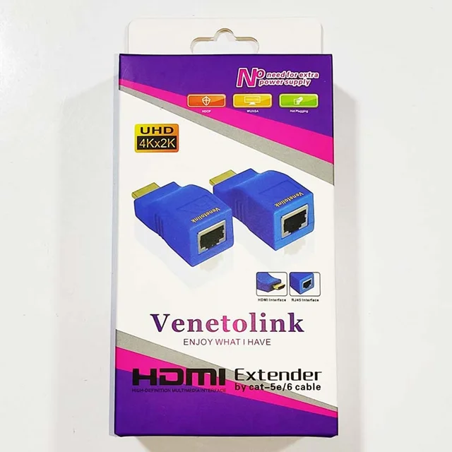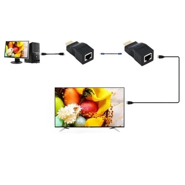 انتقال در این HDMI extender از طریق یک رشته کابل شبکه،LAN،RG45 (ترجیحا cat5یا cat6 ) انجام میشود. در حال حاضر مدلهای مختلفی در بازار موجود است که با آنها میتوان تا 120 متر طول کابل HDMI را افزایش داد.