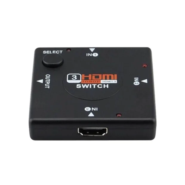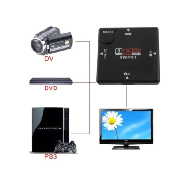 با استفاده از دستگاه HDMI Switch 3port می توان 3 پورت HDMI را به یک دستگاه (مثلا یک تلویزیون با فقط یک پورت HDMI) متصل نموده و با استفاده از دکمه Select روی دستگاه هر کدام از 3 ورودی را انتخاب نمود. این وسیله برای سیستم هایی که دارای فقط یک ورودی HDMI هستند مناسب بوده تا بتوان چند دستگاه را به آن متصل نمود. دستگاه به آداپتور خاصی نیاز ندارد.