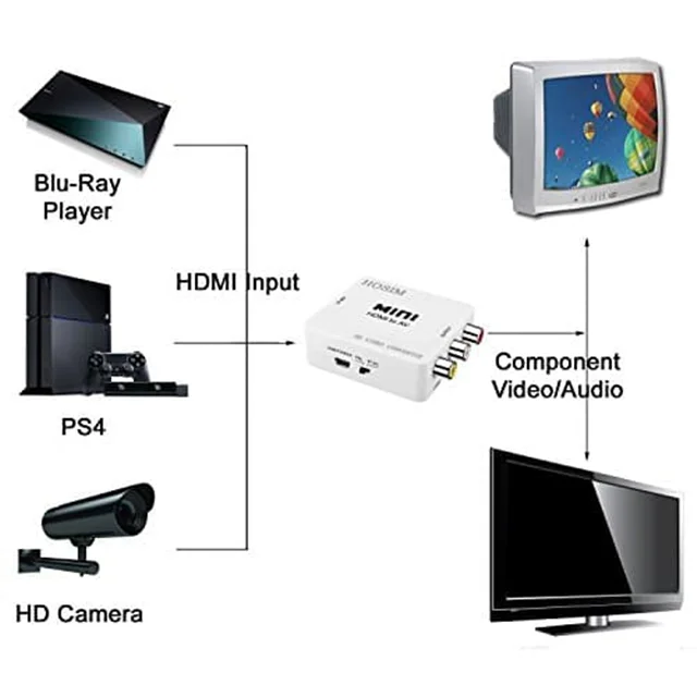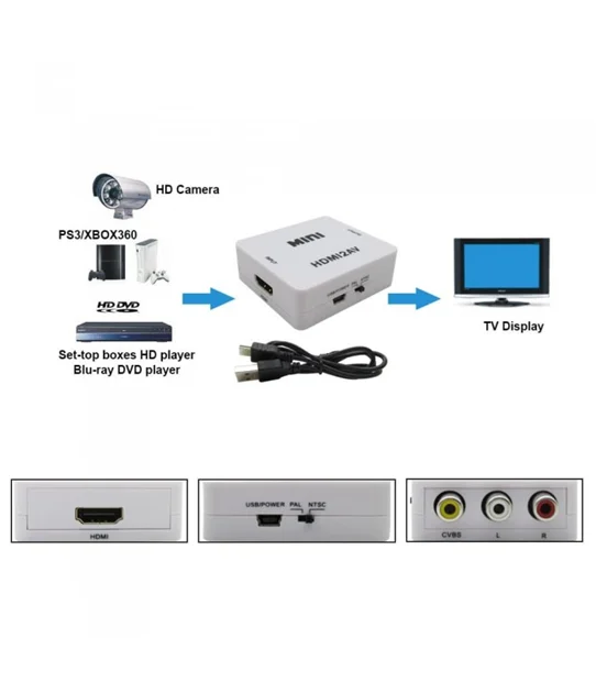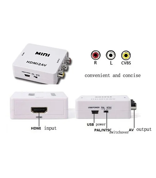 شما با خرید مبدل HDMI به AV مدل Mini می توانید خروجی دستگاه هایی مانند پلی استیشن 3 – DVD – لپ تاپ – کامپیوتر – دوربین و… که دارای درگاه HDMI هستند را به وسیلهی کابل HDMI به ورودی HDMI این دستگاه متصل کنید، با یک کابل سه به سه AV خروجی درگاه سه تایی یا AV را به ورودی سه رنگ تلویزیون متصل کنید و به وسیلهی کابل USB شارژر موجود در بسته یک برق 5 ولت با شارژرهای معمولی گوشی موبایل به دستگاه بدهید و تصویر را روی تلوزیون دریافت کنید. توجه نماید که این نوع مبدل با مبدل AV TO HDMI متفاوت میباشد لطفا هنگام خرید دقت بفرمایید.