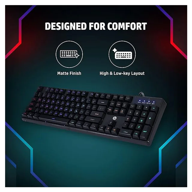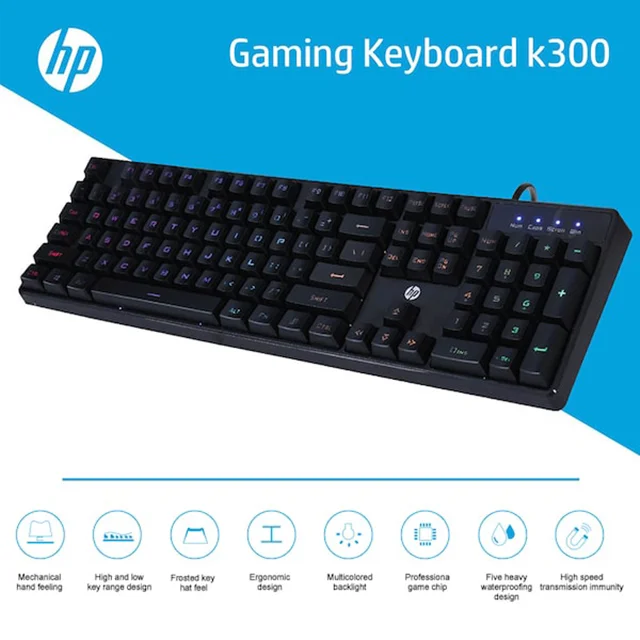 کیبورد مخصوص بازی اچ پی مدل K300 یک کیبورد باسیم است که برای گیمرها طراحی شده است. این کیبورد دارای 104 کلید است و از مشخصات زیر برخوردار است: