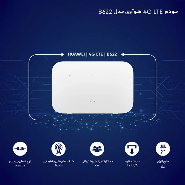 ویژگیهای مودم 4G LTE هوآوی مدل B622 عبارتند از: