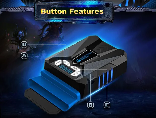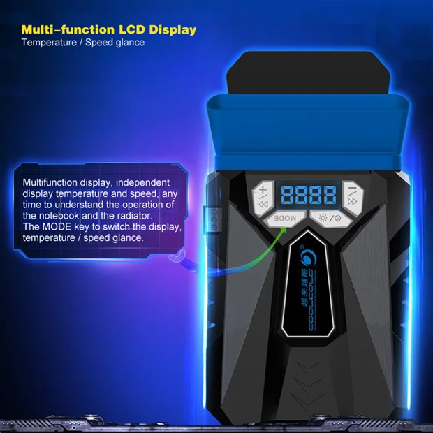نمایشگر LCD با فشار دادن دکمه MODE به مدت 2 ثانیه، دو حالت صفحه نمایش قابل تغییر را ارائه می دهد: دما و سرعت فن.