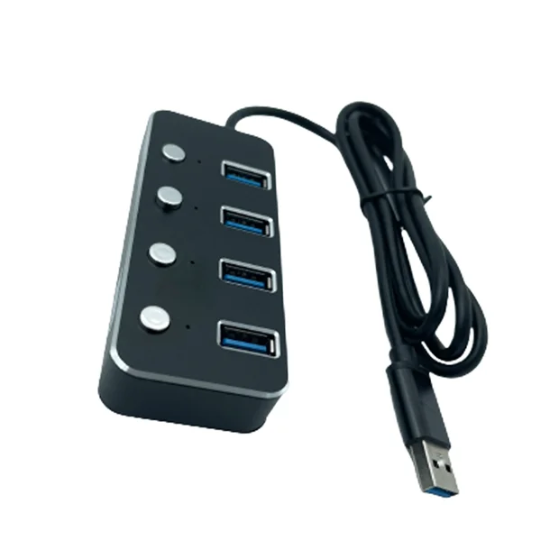 هاب 4 پورت USB 3.0 مدل h5 کلید دار از طریق یک کابل usb3.0 به دستگاه شما متصل و 4پورت usb به شما ارائه می دهد. این هاب با دارا بودن پورت های کلیددار به شما امکان قطع و وصل کردن هر پورت به صورت مجزا را می دهد.