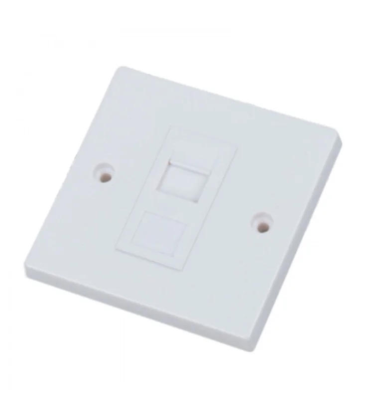 از فیس پلیت برای پریزهای داخل دیوار استفاده میشود.فیس پلیت ها در دو نوع تک پورت و دو پورت وجود دارد و قابلیت نصب بر روی دیوار و داخل دیوار را دارد.