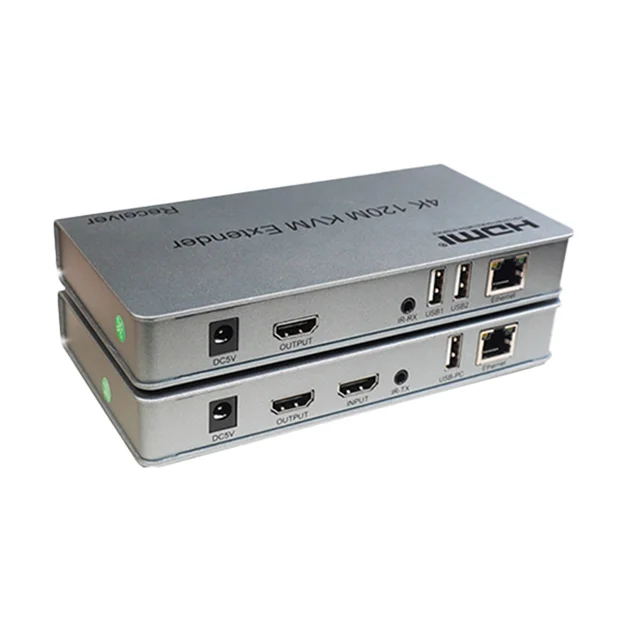 “کی وی ام اکستندر HDMI تا 120 متر کی نت KE7120″ دستگاهی است که انتقال تصویر یک ورودی (کیس،لپ تاپ، NVR و…) را به فاصله 120 متر به همراه ماوس و کیبورد از طریق کابل شبکه به نمایشگر منتقل می کند. این افزایش دهنده طول HDMI از پورت های USB، RJ45 و جک 3.5 میلیمتری نیز برخوردار است و از رزولوشن Full HD@30Hz پشتیبانی کرده و با برخورداری از خروجی صدا تجربه جذابی از تماشای محتوای مورد علاقه تان را ارائه می دهد. کی وی ام اکستندر HDMI دارای دو بخش فرستنده و گیرنده می باشد که واحد فرستنده آن از طریق کابل HDMI و USB به کیس یا NVR متصل می شود و سمت گیرنده سیگنال های تصاویر ،صدا و داده های USB (کیبورد و ماوس) را دریافت و از طریق کابل HDMI به نمایشگر منتقل می کند. ارتباط فاصله بین فرستنده تا گیرنده از طریق کابل شبکه CAT6 محیا می شود.