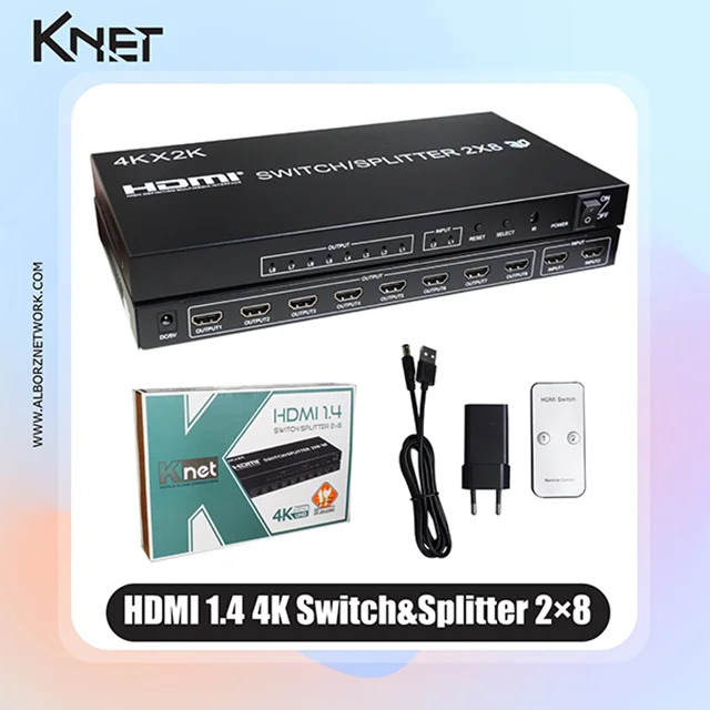 سوییچ اسپلیتر HDMI 2×8 کی نت مدل K-SWSP1428