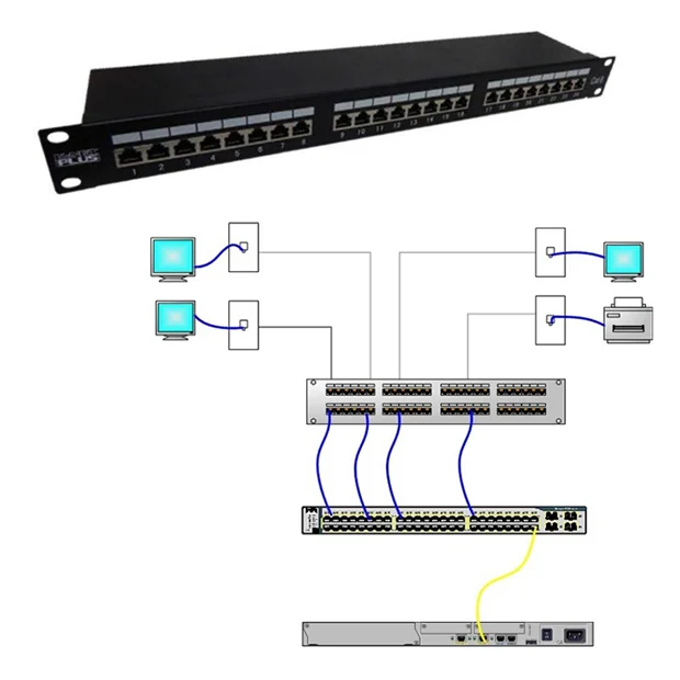 وظیفه اصلی پچ پنل این است که بین نقاط انتهایی کابلهای شبکه و تجهیزات شبکه ای مثل هاب، روتر، … قرار گرفته و به جای اینکه کابلهای شبکه مستقیما” به این تجهیزات وصل بشن از طریق پچ پنل وصل میشوند.