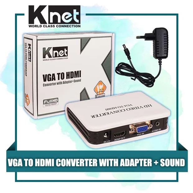 مبدل VGA به HDMI کی نت به همراه آداپتور و خروجی صدا مدل K-COVGA2HD